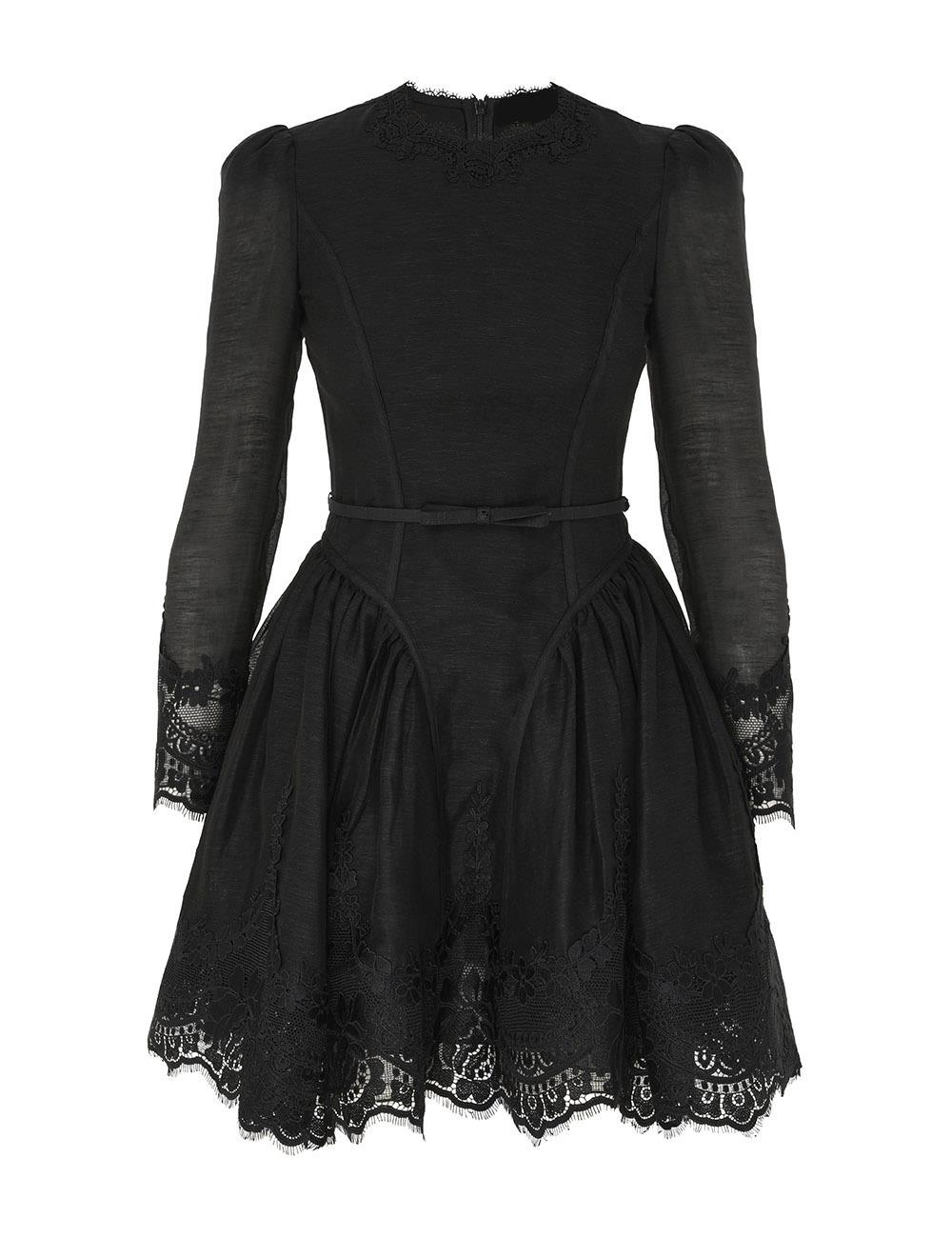 Dantel Detaylı Siyah Mini Elbise