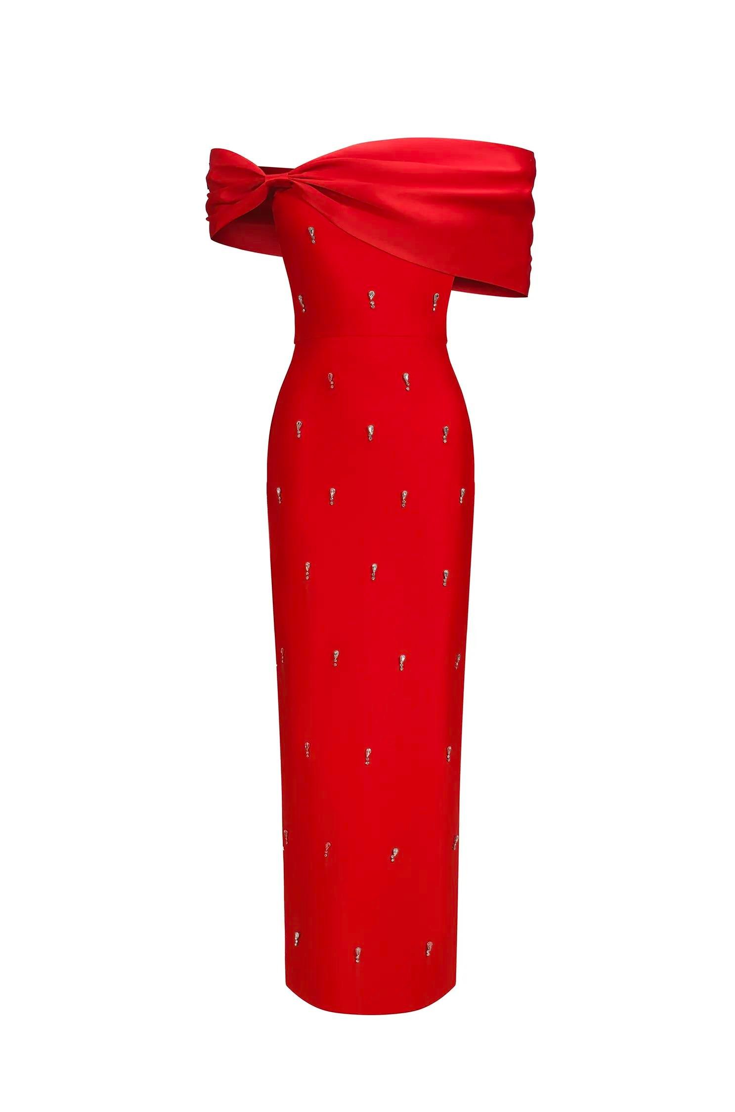 Kristal Taş Detaylı Kırmızı Elbise (A2418)