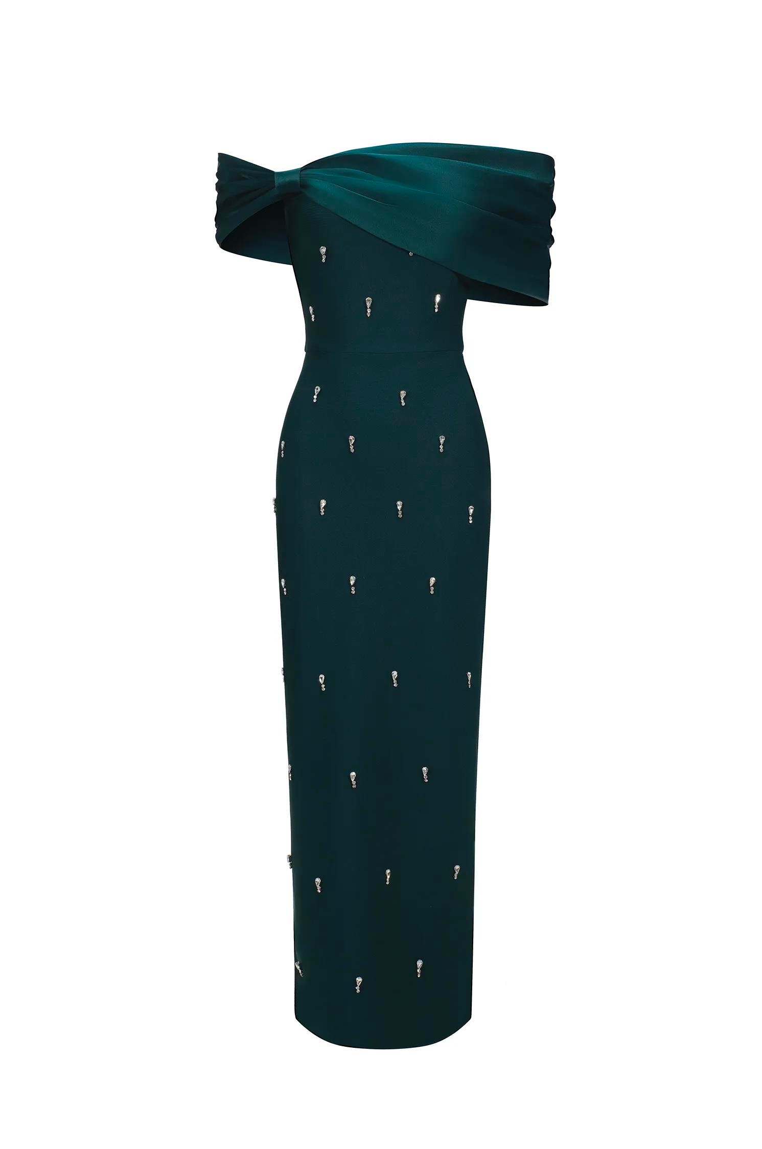 Kristal Taş Detaylı Yeşil Elbise (A2419)