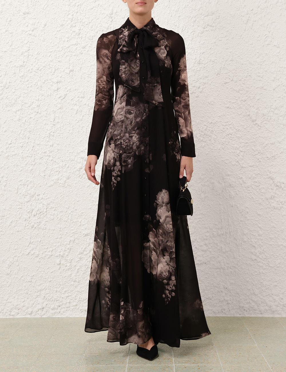Kurdele Detaylı Desenli Maksi Elbise (A2402)